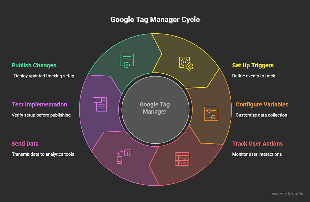 Google Tag Manager is a tool that helps you manage tracking tags without editing your website’s code. Instead of placing each script manually, you control everything from a single interface.
