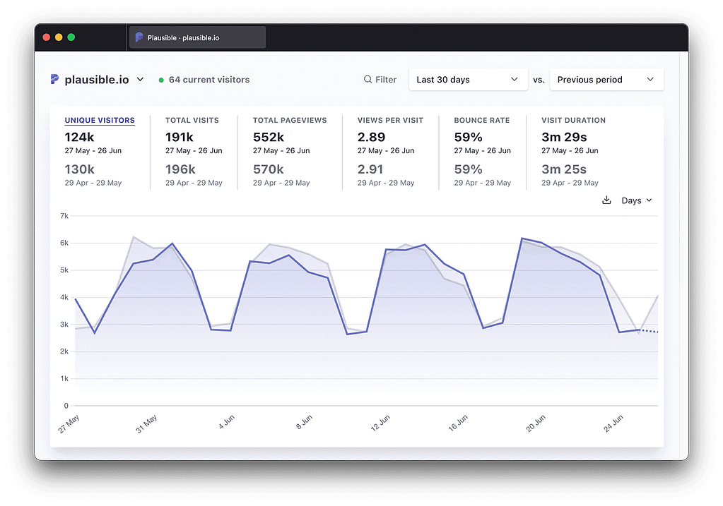 Plausible Analytics is among the best analytics tools for ecommerce teams that value simplicity and privacy.