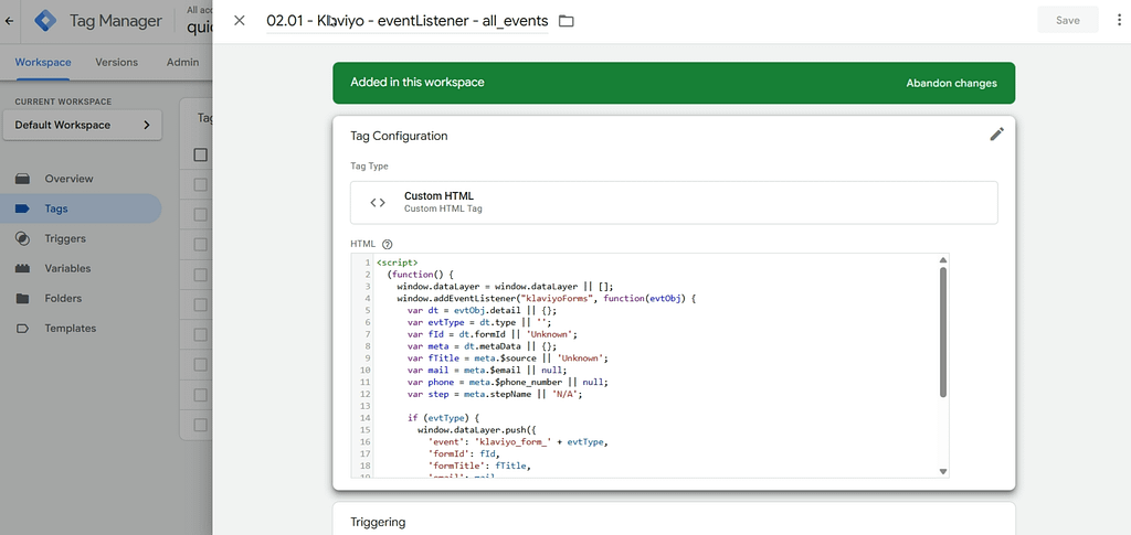 - Custom HTML Tag in GTM: Klaviyo Event Listeners
